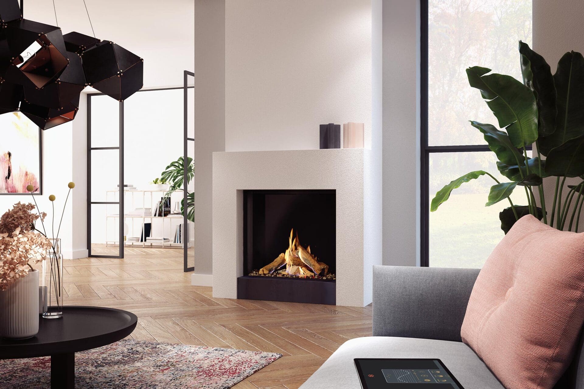 The DRU Prestige® 42 luxury gas fireplace is a stunning embodiment of modern elegance and efficient heating, backed by advanced technology. Its sleek design and expansive viewing area make it the perfect centerpiece for any contemporary living space. With a heat output of up to 40,600 BTU (NG), it effortlessly warms your home while captivating with its lifelike flames. Choose between natural gas or propane for ultimate flexibility. The Prestige® 42’s advanced technology ensures optimal energy efficiency, giving you the confidence that you’re making an environmentally responsible choice without sacrificing the mesmerizing dance of fire.